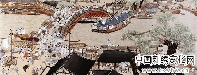 张择端一幅《清明上河图》毕现了北宋年间都城开封昔日的风采:市井、桥畔、街巷、阡陌,商贾云集,摩肩接踵,热闹非凡......,在商品经济大发展的北宋,刺绣业在手工业中占有极其重要的地位,人们把汴绣亦称宋绣。宋绣在中国刺绣史上占有突出的地位,它在实用品和欣赏品上都有辉煌的成就。上承古代刺绣的优良传统,下开明清刺绣高度发展的先河,作为北宋都城开封的刺绣,以其地位的优越和人才的集中,无疑是宋绣的冠冕。