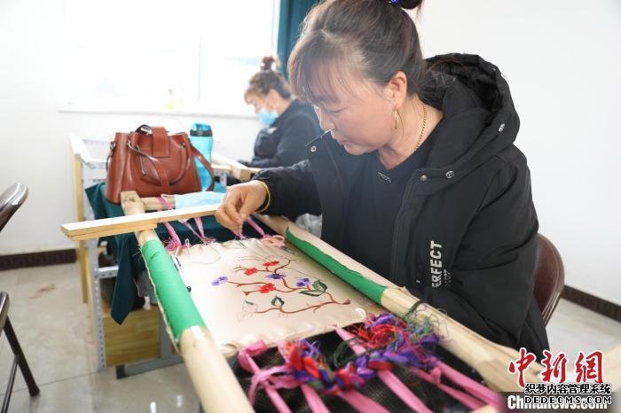 古生擅长绣牡丹和菊花,靠着闲暇时间绣花,不仅富了自己的口袋,同时还作为刺绣带头人带动90名妇女一同刺绣。