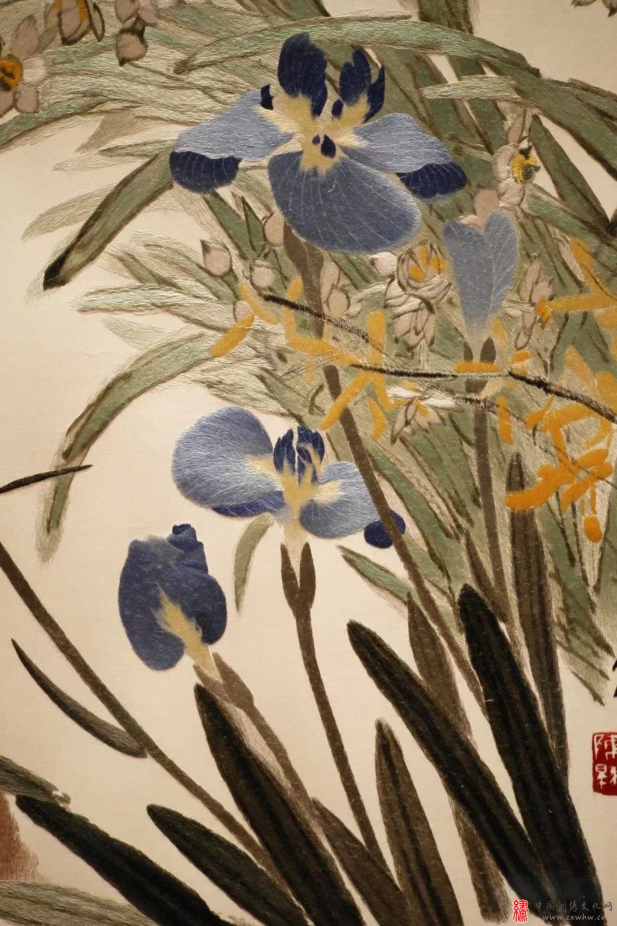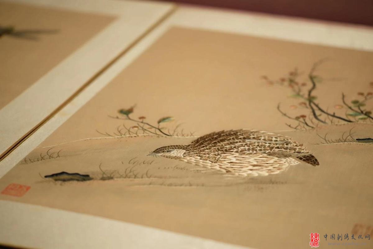 “苏绣艺术文献展(1949—2019)”展览现场 单面绣《春回大地》(局部)