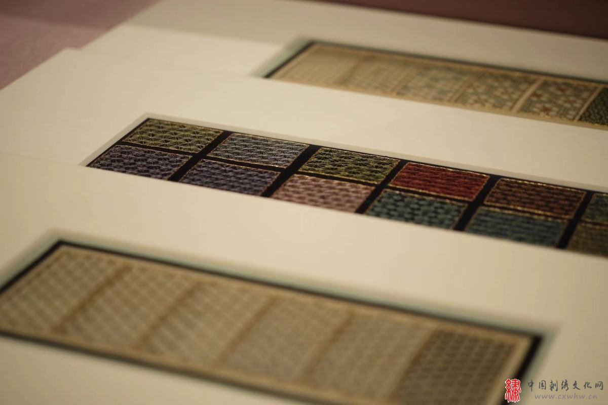 “苏绣艺术文献展(1949—2019)”展览现场 苏州刺绣研究所 《汉代刺绣针法》(据长沙马王堆汉墓出土文物复制)