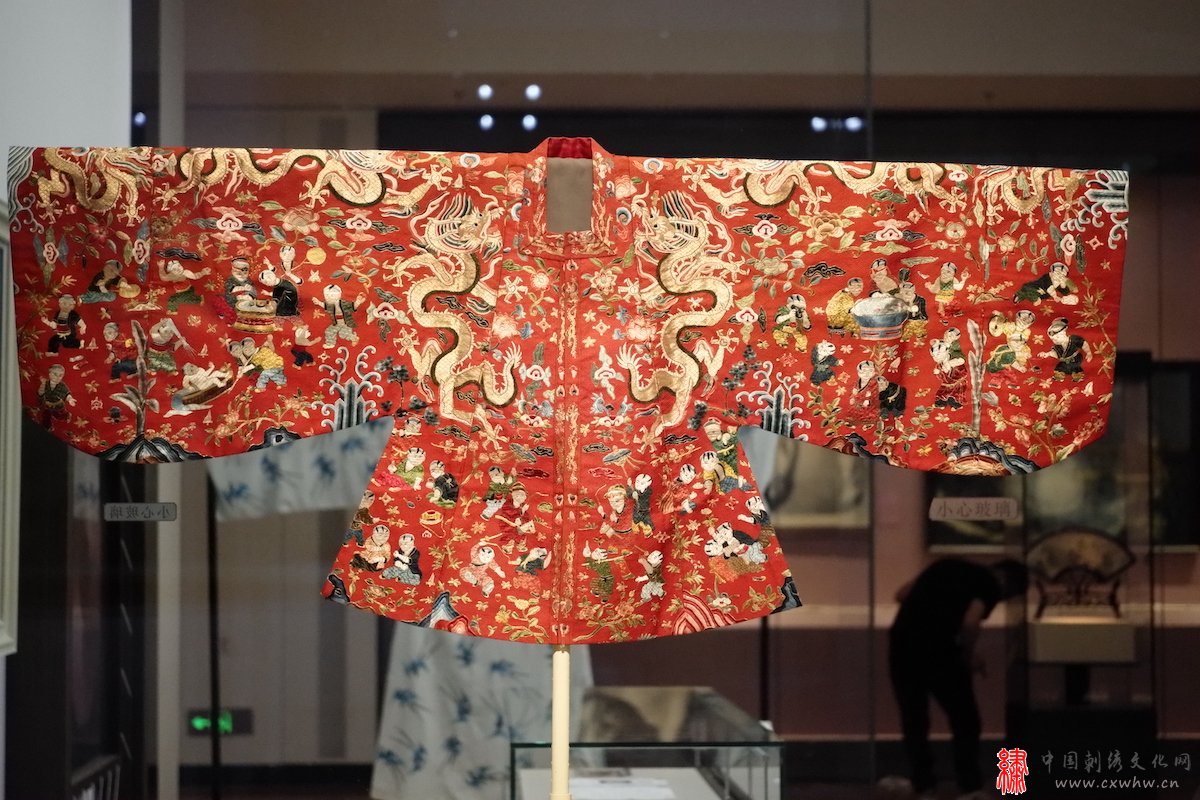 “苏绣艺术文献展(1949—2019)”展览现场 苏州刺绣研究所 《明定陵出土刺绣百子衣》(复制)