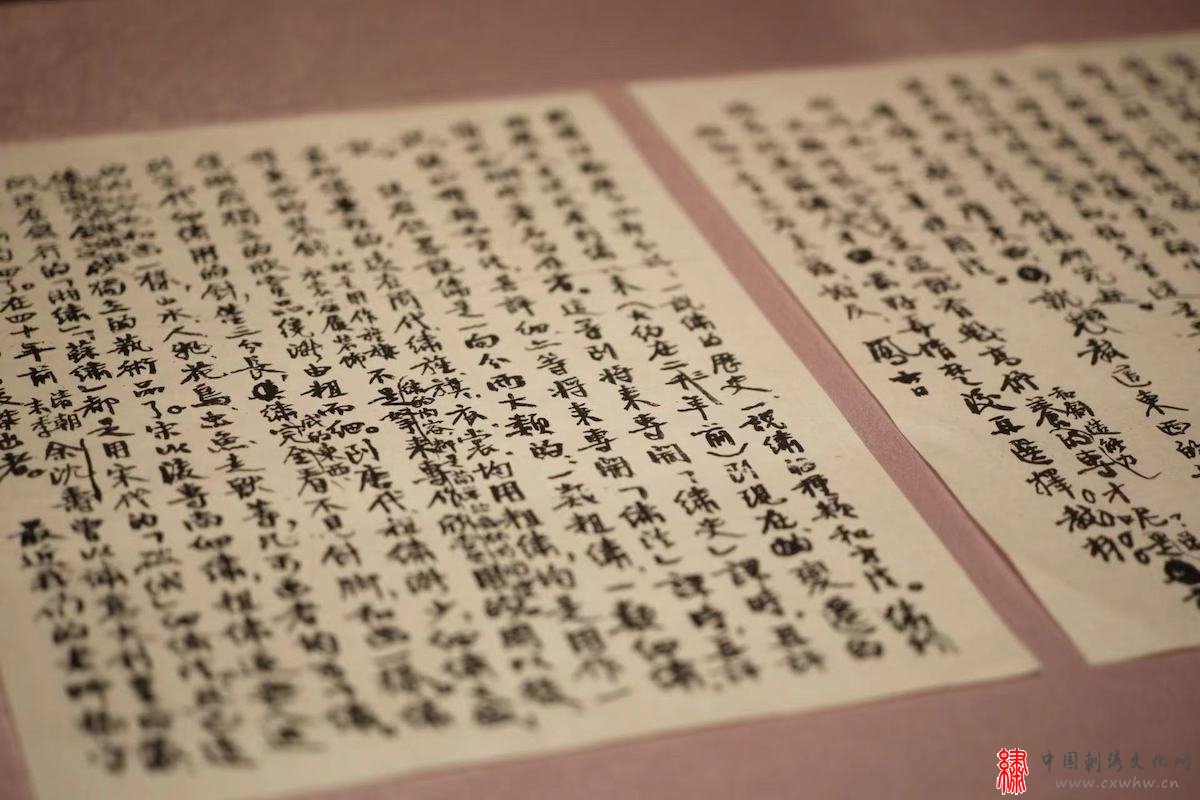在展示的一封吕凤子《致任嘒閒信札》中,吕凤子认为刺绣理论教学应包含刺绣的历史、种类和方法;同时简要梳理粗绣与细绣的历史,对刺绣评价标准提出了自己的看法,认为目前“比针绣”是别开生面的、真正有美术价值的绣法,应加以发扬;以及阐述了对具有较高修养及创造力的刺绣人才培养目标等问题的思考。