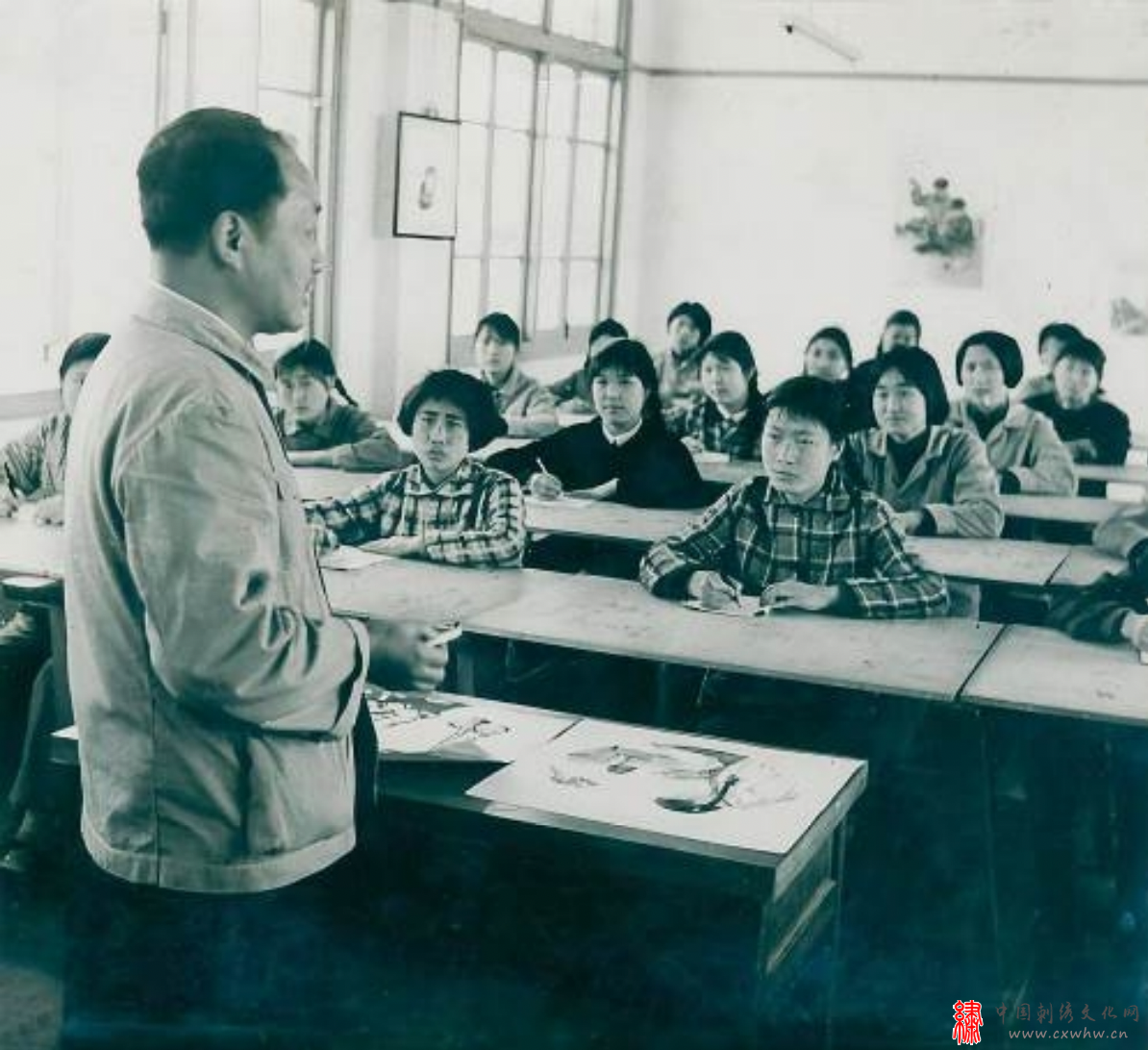 1959年,李娥英、徐绍青为首届刺绣专修班上课