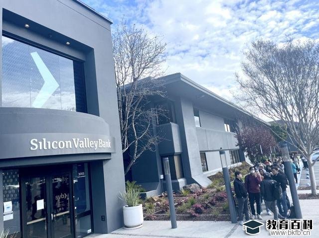 在硅谷银行营业点,众多储户排着长队等待取款