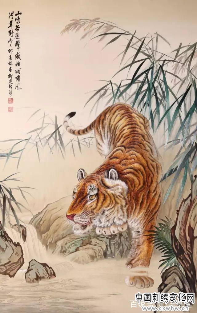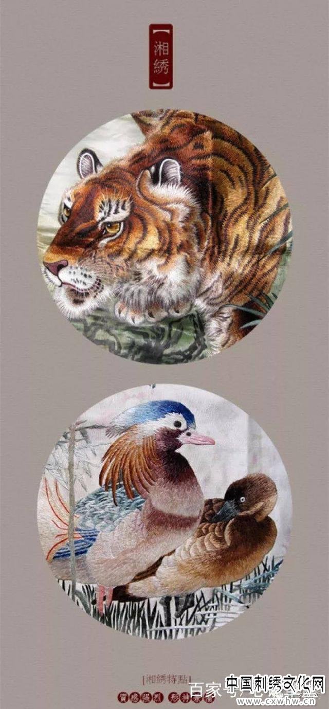 湘绣针法以掺针为主,根据不同物象及其不同部位所表现出的不同肌理,施用不同针法,使物象更真实、更有立体感,逐渐形成绣面写实、设色鲜明、风格质朴的地方特色,狮子、老虎是湘绣传统产品。