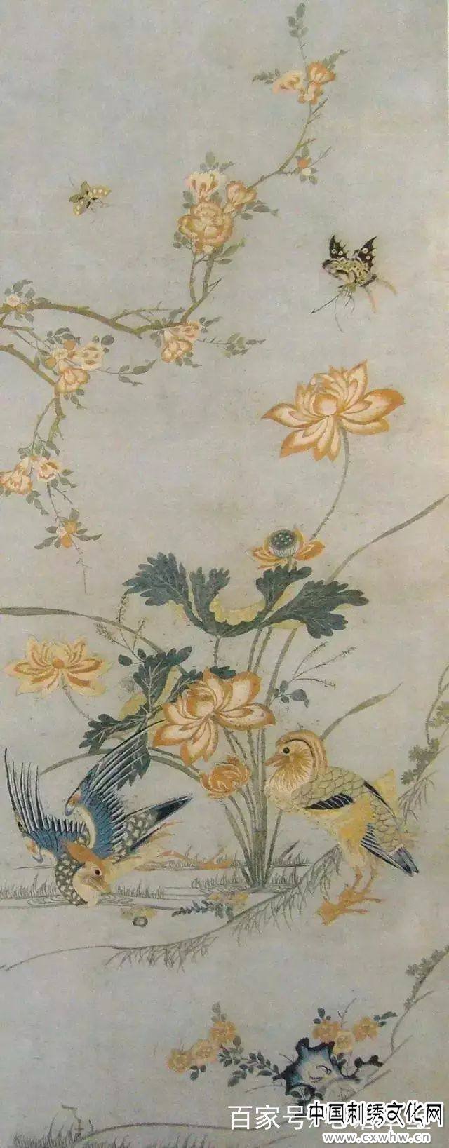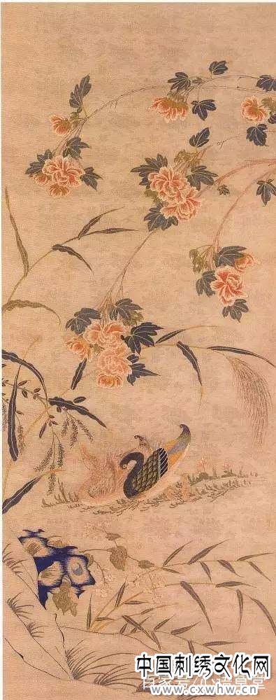 故宫博物院藏 明末 鲁绣芙蓉双鸭图(轴)
